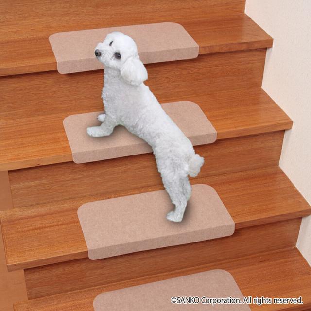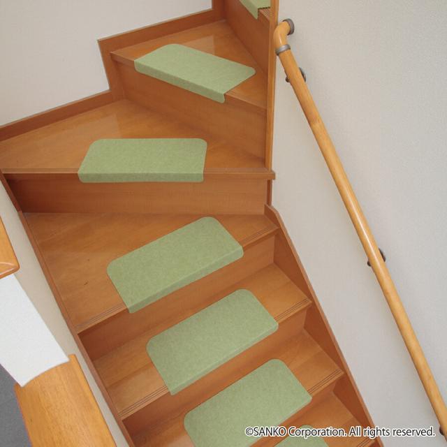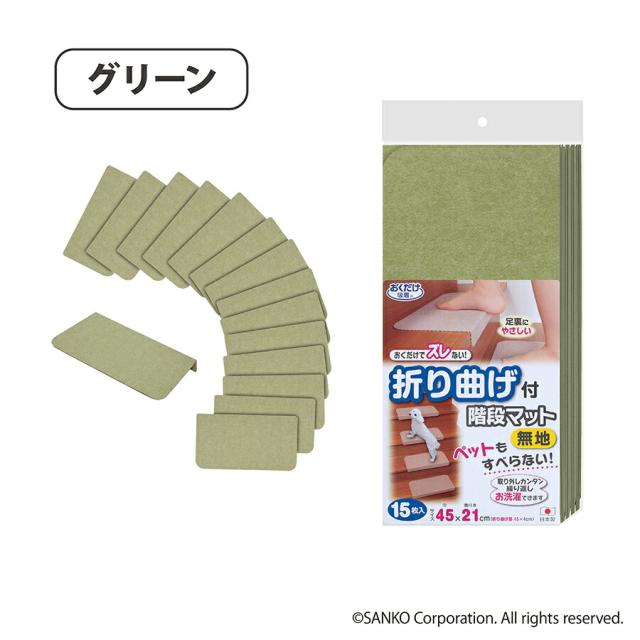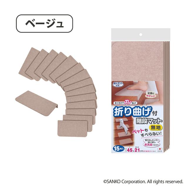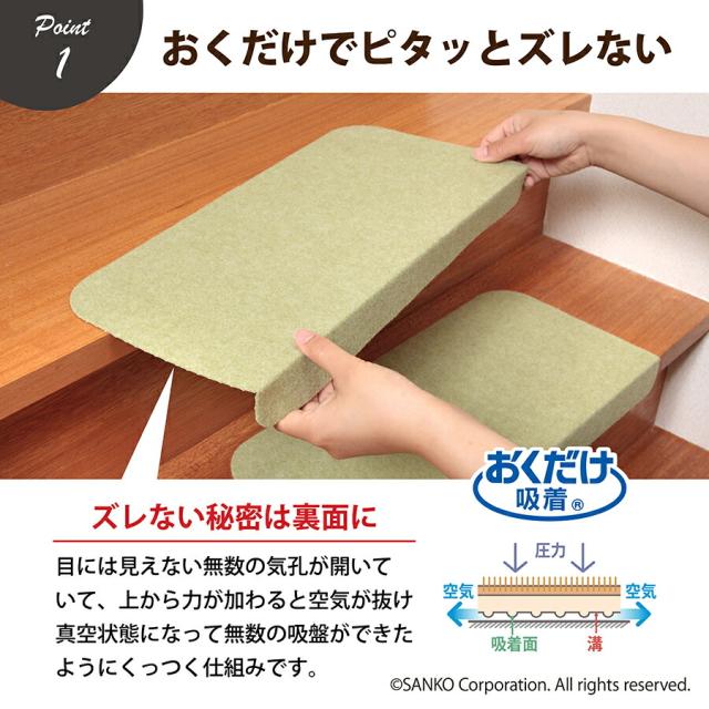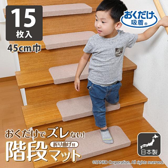 階段 滑らない ズレない 安心 負担軽減 洗える 折り曲げ付階段マット 15枚入 おくだけ吸着 サンコー 日本製