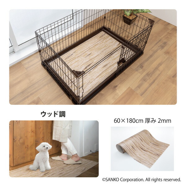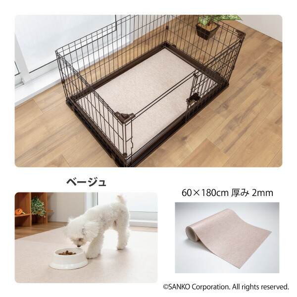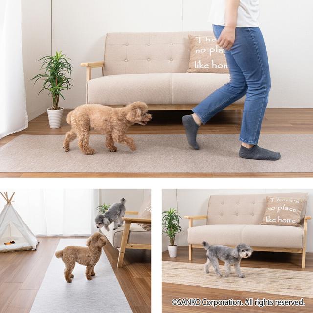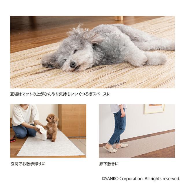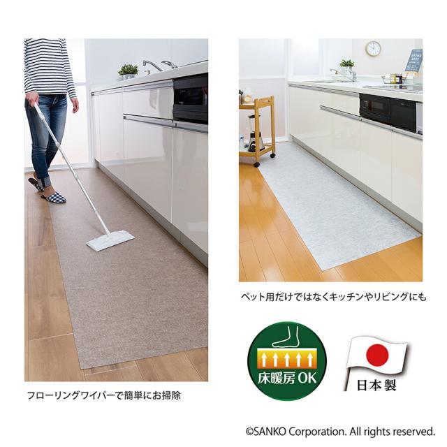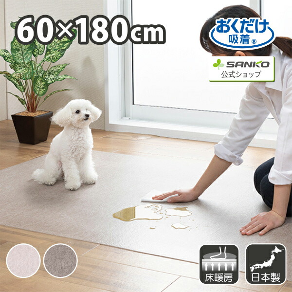 ペット マット 拭ける 撥水 置くだけ 吸着 ズレない 床暖房対応 床保護 滑らない 負担軽減 ペット用拭ける床保護マット 無地 60×180cm おくだけ吸着 サンコー 日本製