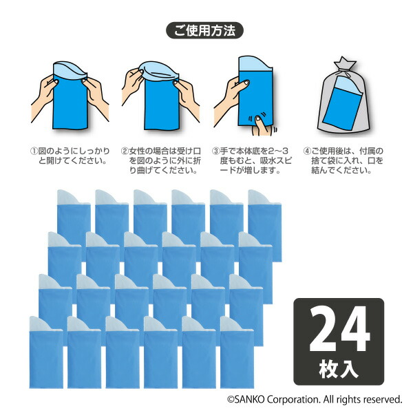 防災グッズ 備蓄 携帯トイレ 半永久保存 災害対策 震災 断水 地震 男女兼用 500cc アウトドア 渋滞 持ち帰り袋付 緊急ミニトイレ24個入 サンコー 日本製