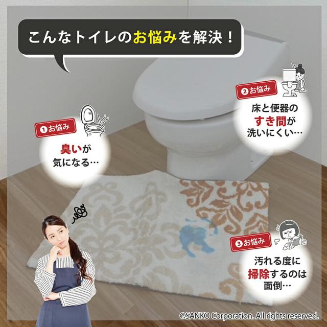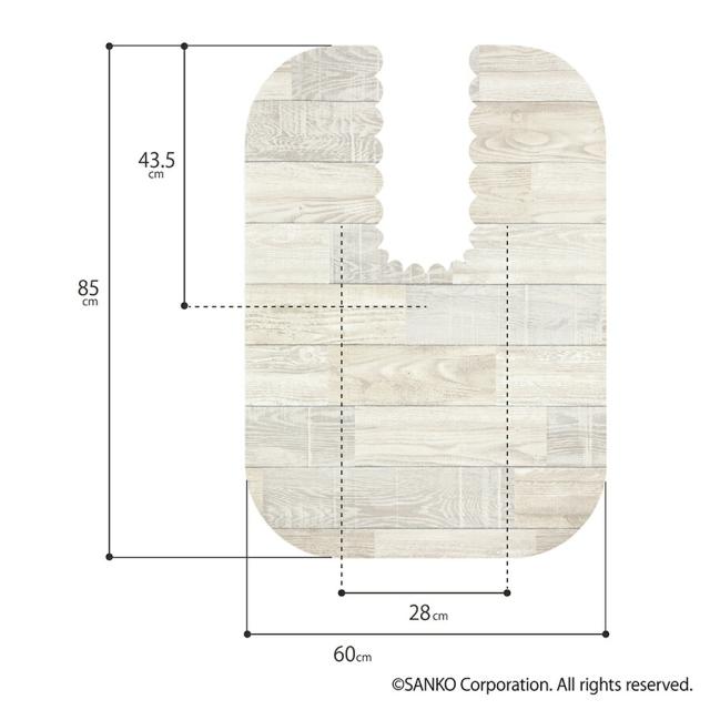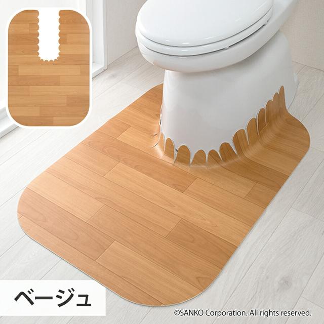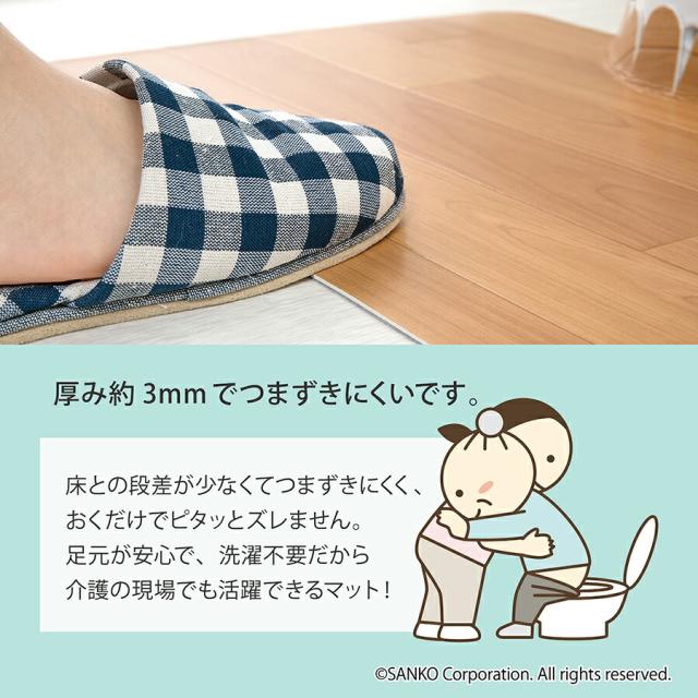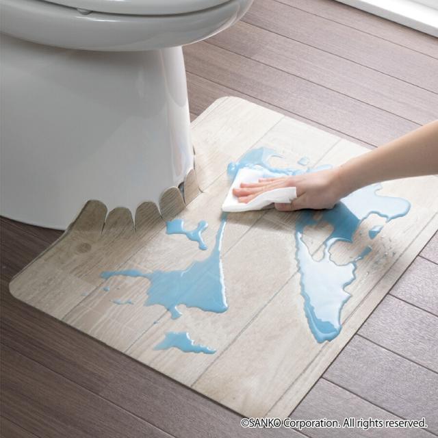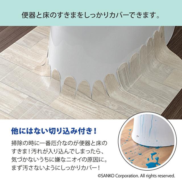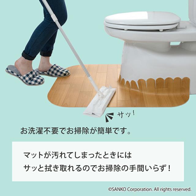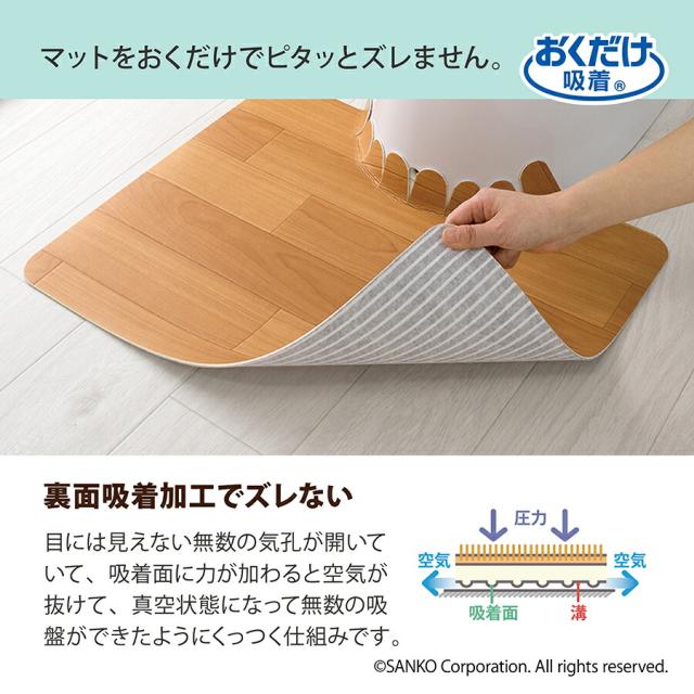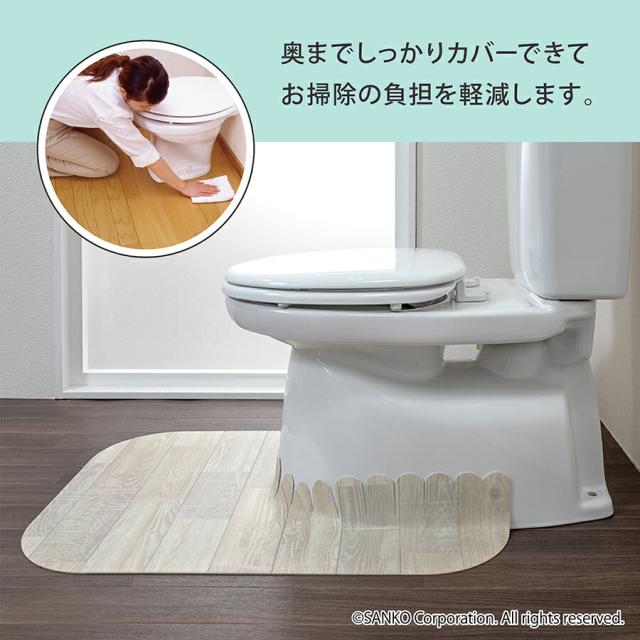 拭ける トイレマット ロング 巾60×奥行き85cm 薄い ウッド調 ズレない トイレ 衛生的 木目 洗濯不要 洗わない 吸着 おくだけ吸着 日本製 サンコー