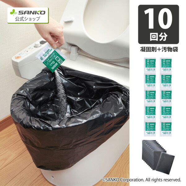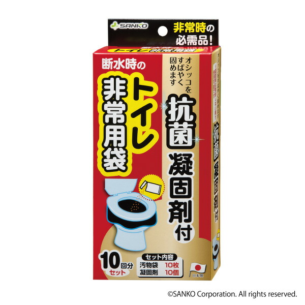 防災グッズ 備蓄 簡易トイレ 半永久保存 災害対策 震災 断水 地震 男女兼用 凝固剤汚物袋セット 抗菌 トイレ非常用袋 抗菌凝固剤付10回分 サンコー 日本製