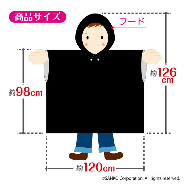 約タテ98(フード含126)×ヨコ120cm
