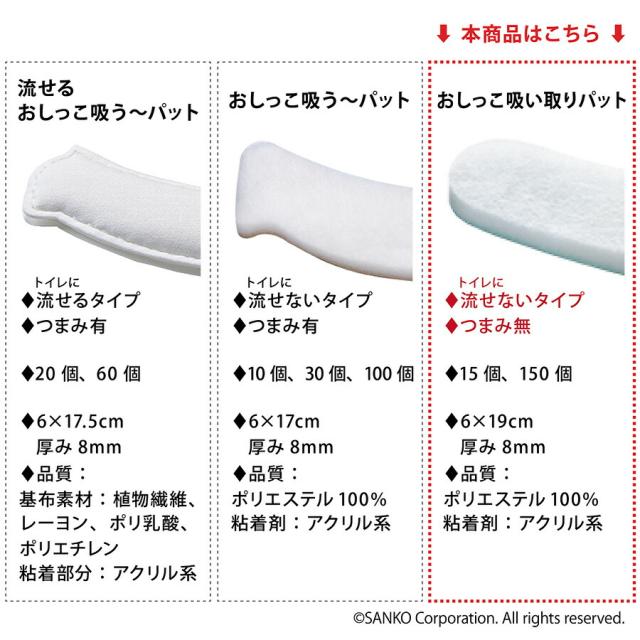 トイレ 汚れ防止 飛び散り 吸い取りパッド 尿取りパッド トイレ用品 厚手 おしっこ吸いとりパット 150個入 サンコー 日本製