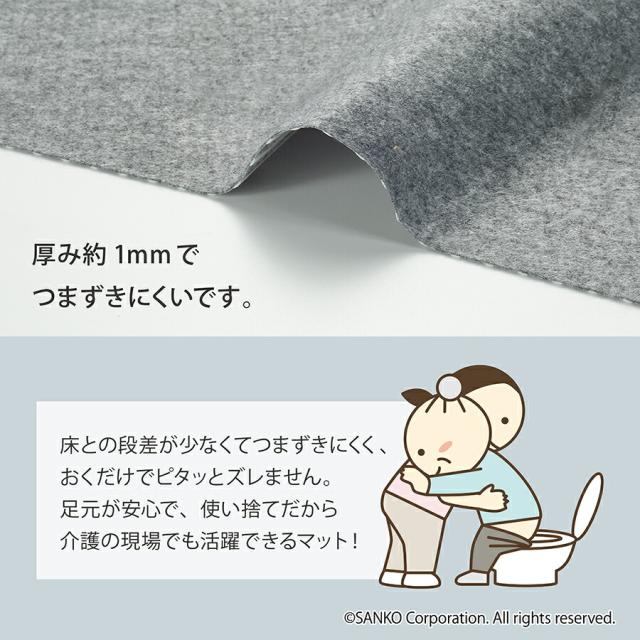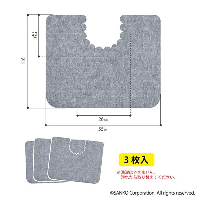 トイレ マット ズレない 介護 使い捨て 衛生的 モノトーン シンプル 床汚れ防止マット 3枚組 巾55×奥行き44cm グレー サンコー 日本製 おくだけ吸着
