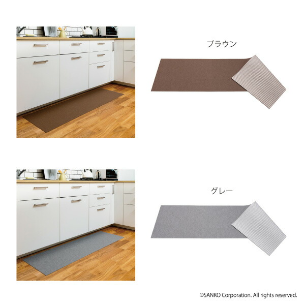 キッチンマット 45×150cm 洗える ズレない 吸着 撥水 床暖房対応 おしゃれ 無地 フラットタイプ おくだけ吸着 サンコー 日本製