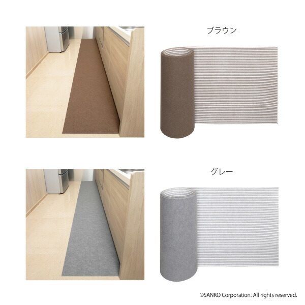 キッチンマット 45×250cm 洗える ズレない 吸着 撥水 床暖房対応 おしゃれ 無地 フラットタイプ おくだけ吸着 サンコー 日本製