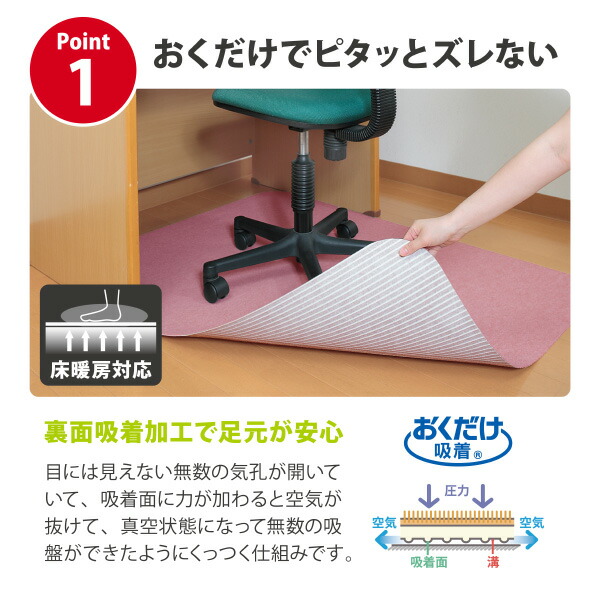 デスクマット チェアマット ズレない 床 保護 汚れ キズ 防止 テレワーク 在宅勤務 デスク 机 デスク足元マット 120×90cm シンプル おくだけ吸着 厚み4mm サンコー 日本製