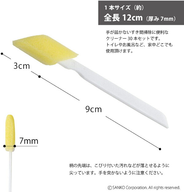 トイレブラシ トイレクリーナー スポンジ すきま掃除 トイレ 隙間 キッチン お風呂 洗面 掃除用品 トイレ用品 すきまクリーナー 30本入 サンコー 日本製
