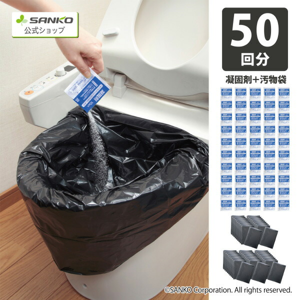 防災グッズ 備蓄 簡易トイレ 半永久保存 災害対策 震災 断水 地震 男女兼用 凝固剤 汚物袋 アウトドア 防災用トイレ袋 50回分 サンコー 凝固剤10gタイプ 日本製
