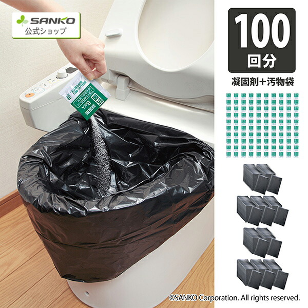 防災グッズ 備蓄 簡易トイレ 半永久保存 災害 震災 断水 地震 男女兼用 凝固剤 汚物袋 抗菌タイプ トイレ非常用袋 抗菌凝固剤付100回分 サンコー 日本製