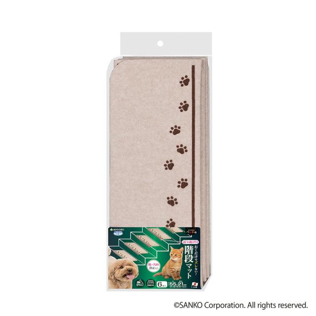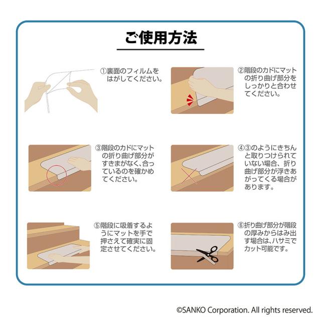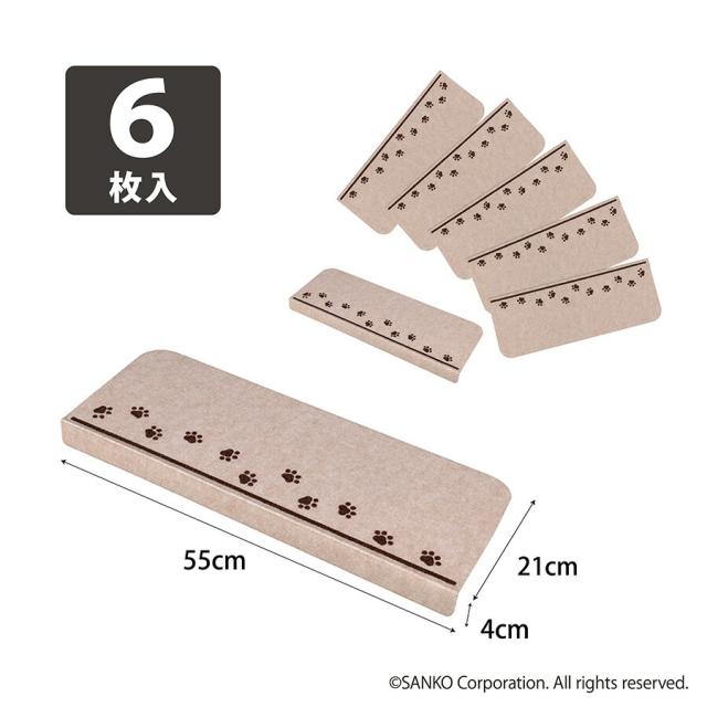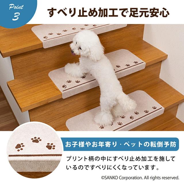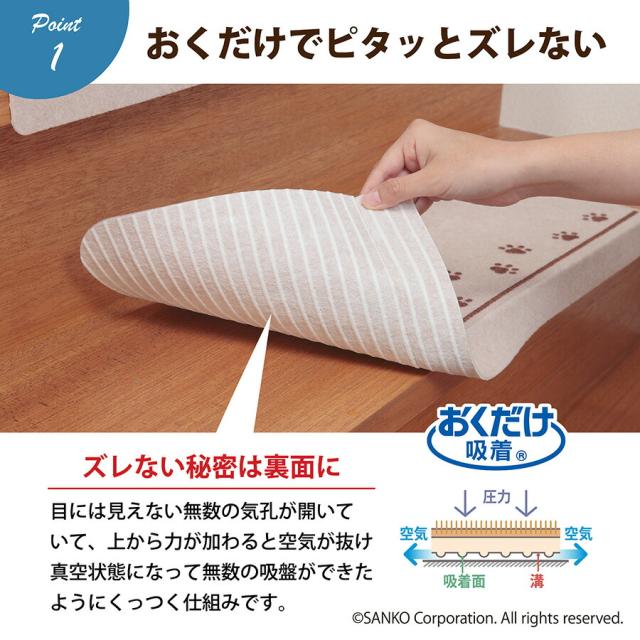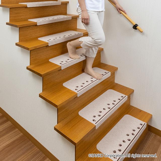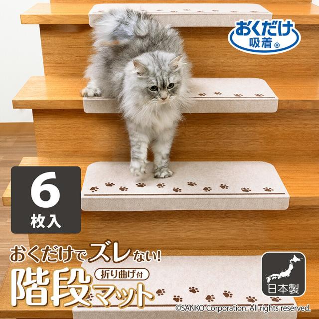 階段 滑らない ズレない 安心 負担軽減 洗える 折り曲げ付 取り換え用 おくだけ吸着階段マット 肉球 6枚入 サンコー 日本製