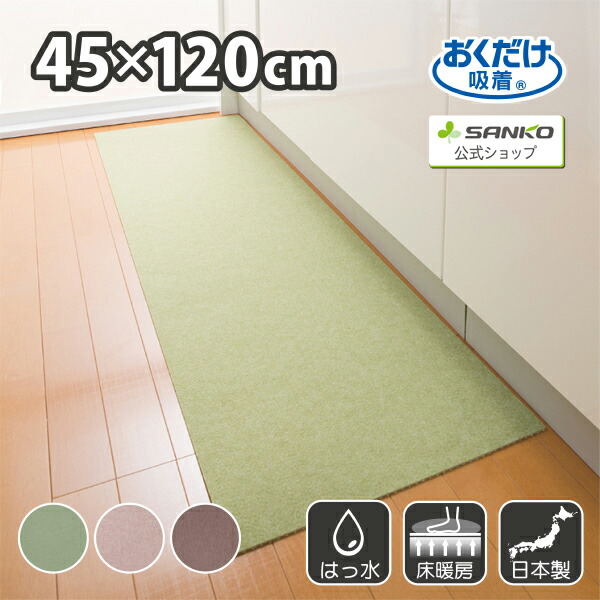 キッチンマット 45×120cm 洗える ズレない 吸着 撥水 床暖房対応 おしゃれ 無地 フラットタイプ おくだけ吸着 サンコー 日本製