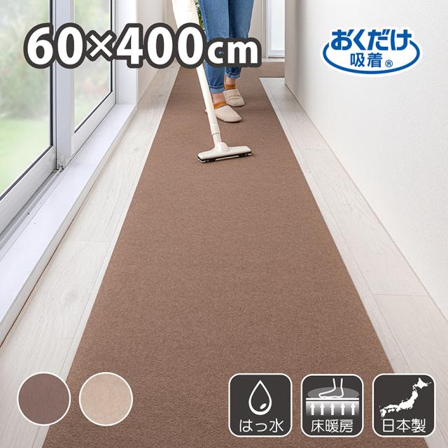 廊下 カーペット 吸着 廊下敷き ロングカーペット ズレない 洗える 撥水 おしゃれ 無地 フラットタイプ ロングマット 60×400cm サンコー 日本製 おくだけ吸着