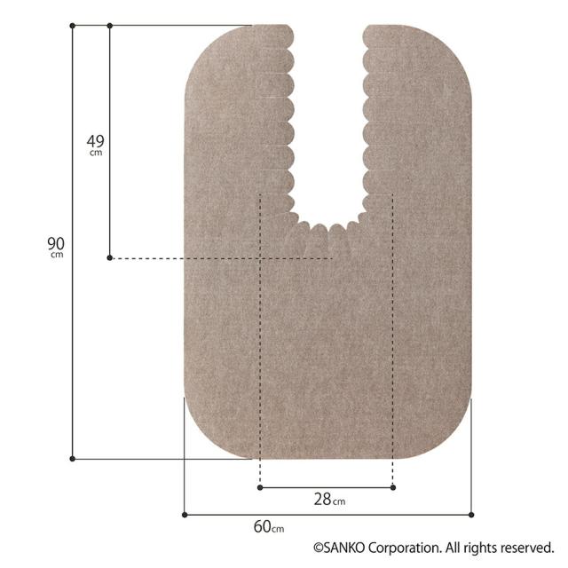 拭ける トイレマット ロング 巾60×奥行き90cm 薄い 無地 ズレない トイレ 衛生的 洗濯不要 洗わない 吸着 おくだけ吸着 サンコー 日本製