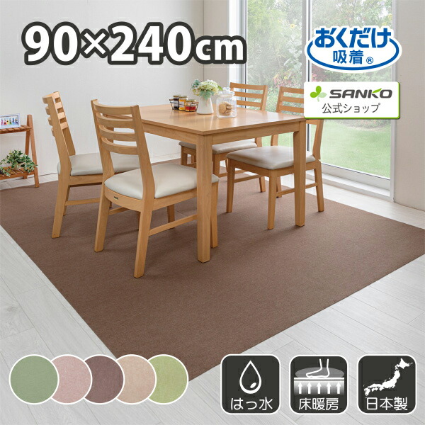 キッチンマット 90×240cm 洗える ズレない 吸着 撥水 床暖房対応 おしゃれ 無地 フラットタイプ おくだけ吸着 サンコー 日本製