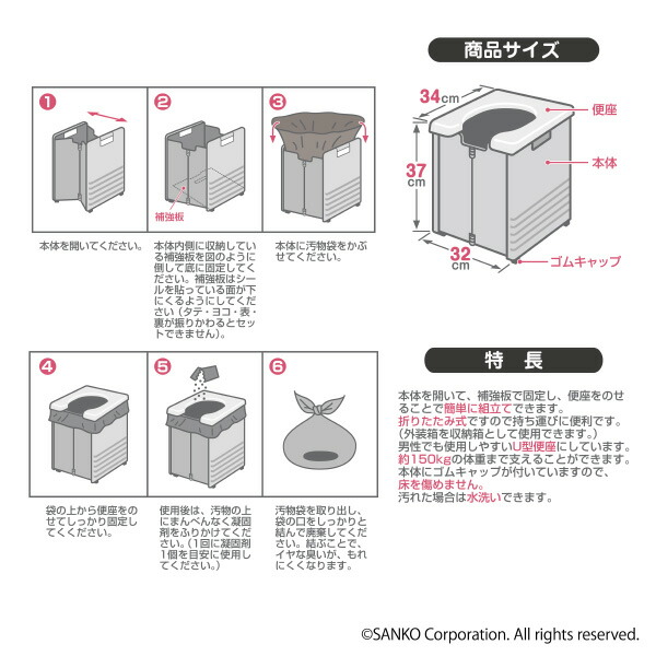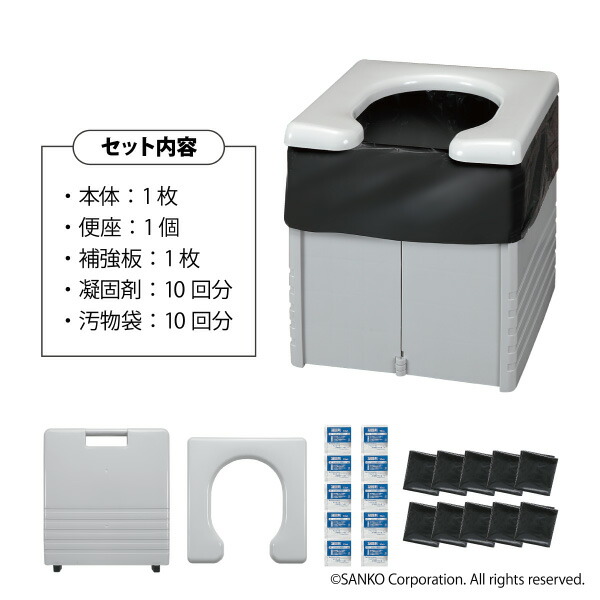 防災グッズ 備蓄 簡易トイレ 半永久保存 災害対策 震災 断水 地震 男女兼用 凝固剤 汚物袋付 アウトドア 簡易ポータブルトイレ サンコー 日本製