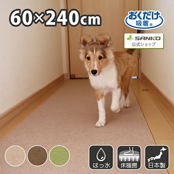 ペット マット 洗える 撥水 置くだけ 吸着 ズレない 床暖房対応 子供 床保護 滑らない 負担軽減 ペット用床保護マット 60×240cm 厚み4mm おくだけ吸着 サンコー 日本製