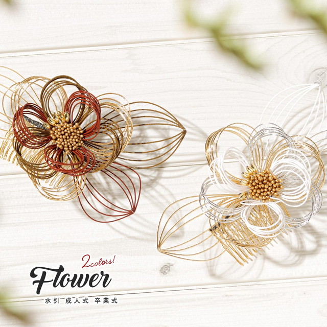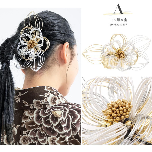 髪飾り 成人式 振袖 水引 卒業式 袴 ラメ 白 ゴールド シルバー 茶系 和洋共用 花 フラワー ビーズ コーム式 ヘアアクセサリー 送料無料