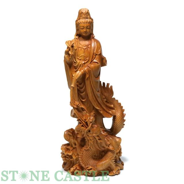 ☆高品質☆【天然石 彫刻置物】黄楊木(ツゲ) 龍乗観音