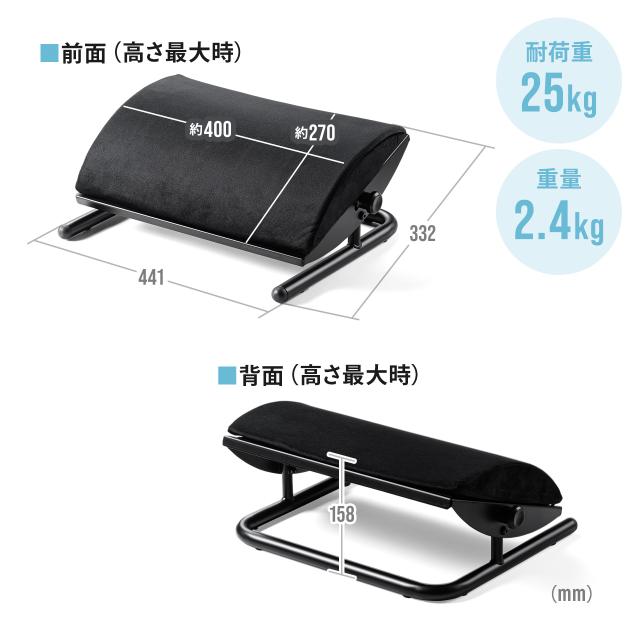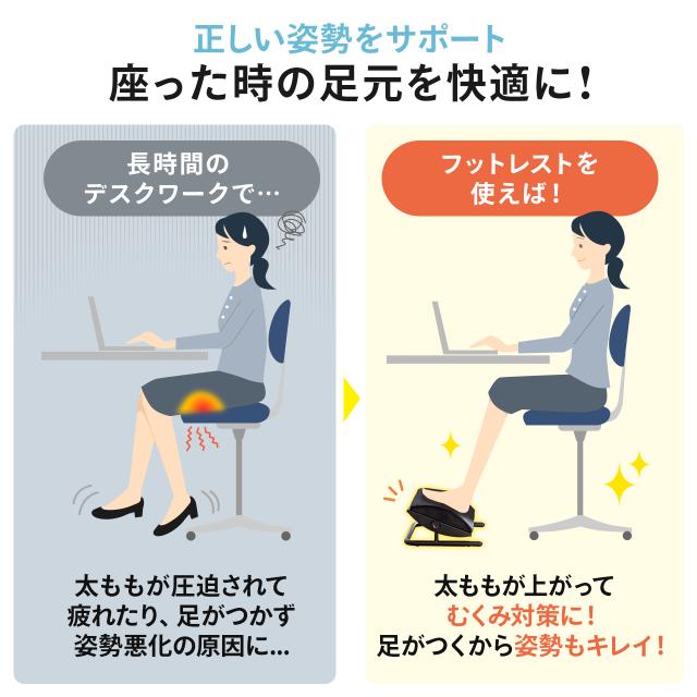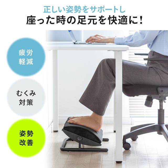 フットレスト デスク下 オフィス クッション 足置き台 スチール脚 角度無段階[100-FR029]