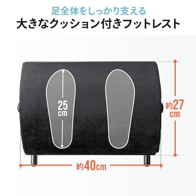 ●足を快適にサポートするフットレストです。足を支えることで、負担を軽減します。●クッションは、縦約27cm×横約40cmで一番厚い箇所は5cmで大きめサイズを採用しています。