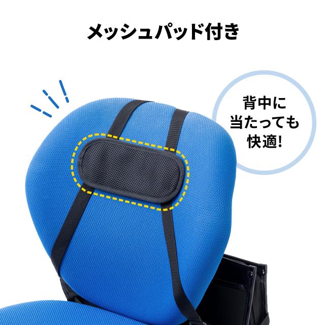 ●背もたれ側にはメッシュパッドがあるのでベルトに当たったときのごわつきを軽減し、通気性も良好です。