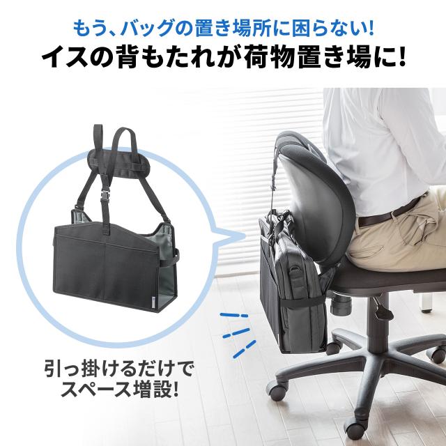●椅子の背もたれにバッグを置くスペースを作ることができる背もたれ用荷物入れです。●デスクワークやセミナーなど様々な場面で使用することができます。