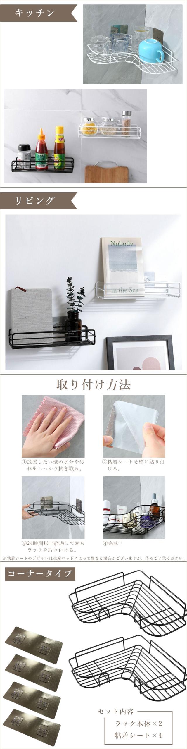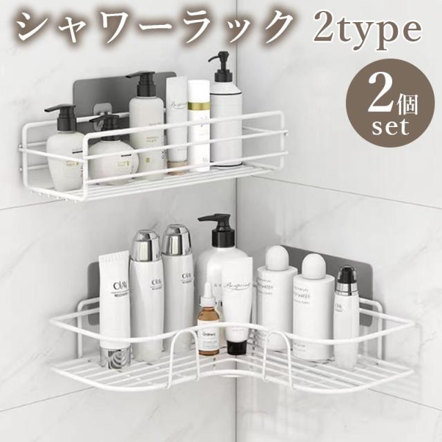シャワーラック 2個組 粘着シート付き 壁を傷つけない マルチラック コーナーラック 三角 お風呂 バスルーム キッチン 省スペース 壁面収納 隙間収納 洗面所 シンプル ブラック 水切りラック バス用品 キッチン用品 整理棚 ラック シェルフ 空きスペース