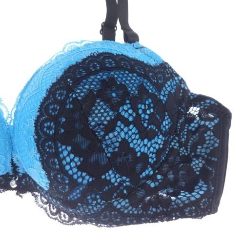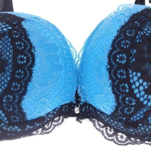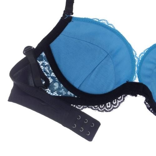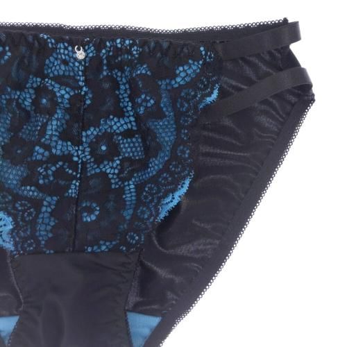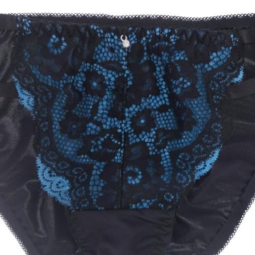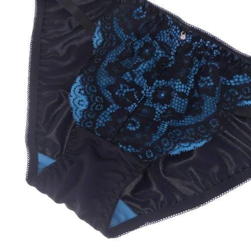 ブラは黒ベースのカップの上辺にアクセントカラーのレースで印象深く。
