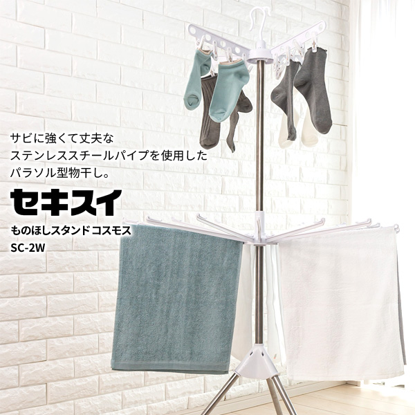 室内物干し セキスイ ステンクラーものほしスタンド コスモス 2段 ホワイト SC-2W | 洗濯物干し 物干しスタンド タオル干し パラソル ピンチハンガー 部屋干し タオルハンガー タコ足スタンド 折りたたみ