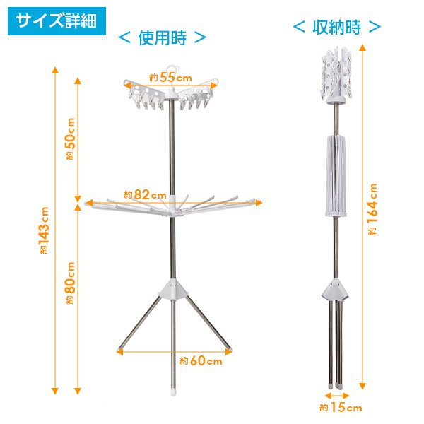 収納時サイズ(約):幅15×奥行15×高さ164cm