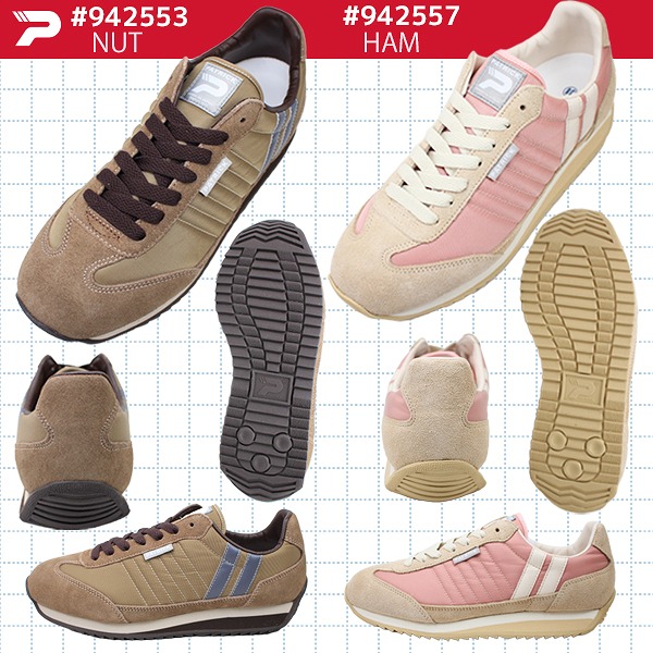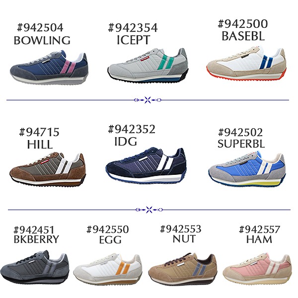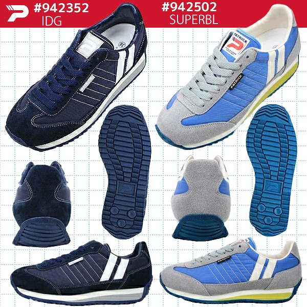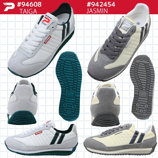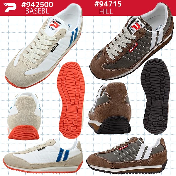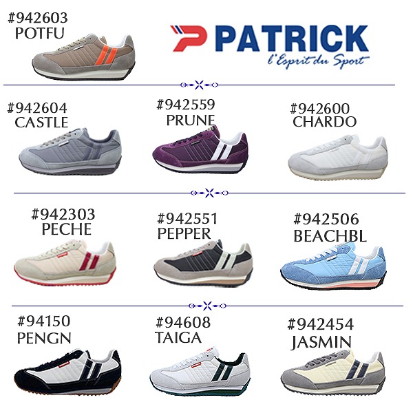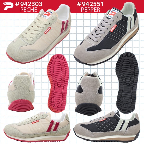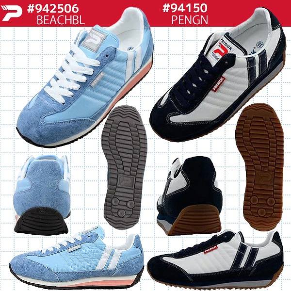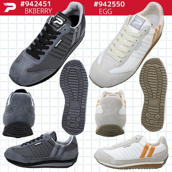 履き心地の良さに加え、ポップなカラーリングでパトリックの代表モデルとなっています。1992年に復刻した現在のモデルは、オリジナルと同じ木型を用いており、特徴である細身のフォルムを継承しています。