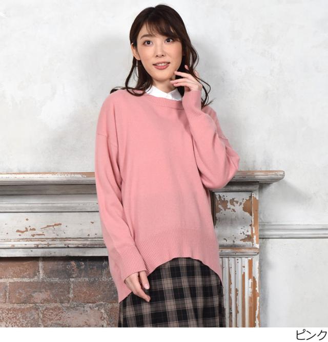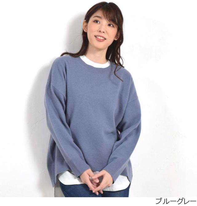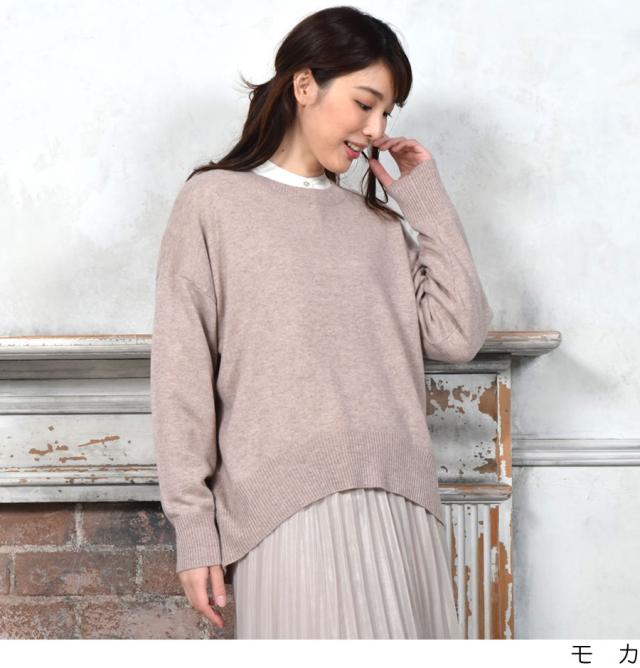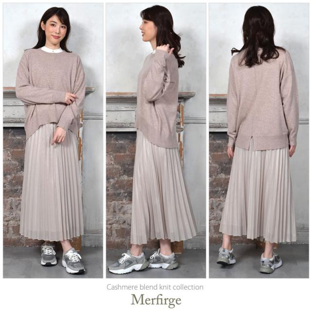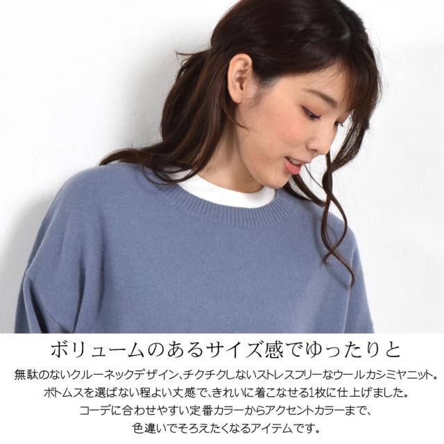 ニット セーター ボートネック クルーネック 長袖 カシミヤニット カシミヤセーター カシミヤ混 ウールカシミヤ ウールセーター 丸首 トップス (wn3451)[Merfirge]