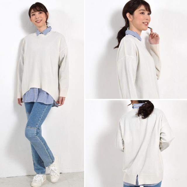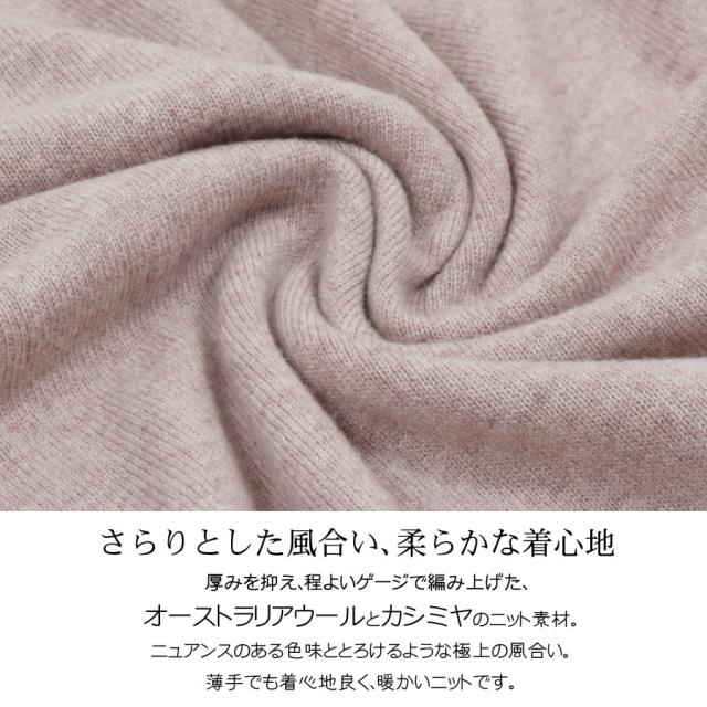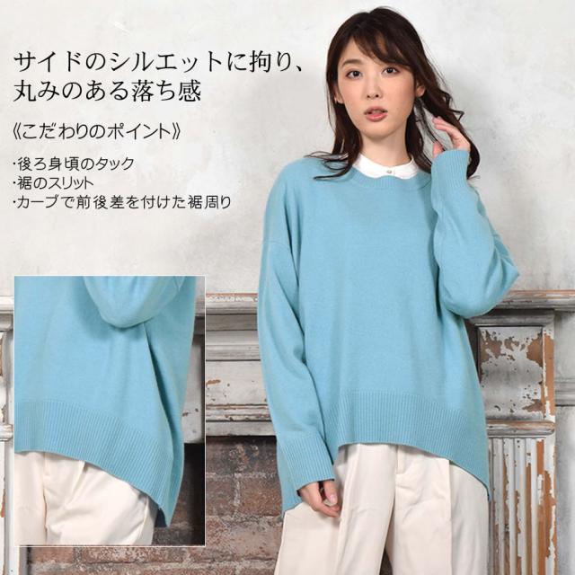 厚みを抑え、程よいゲージで編み上げた、オーストラリアウールとカシミヤのニット素材。ニュアンスのある色味ととろけるような極上の風合いで、薄手でも着心地良く、暖かいニットです。サイドのシルエットに拘った丸みのある落ち感、後ろ身頃のタック、裾のスリット、カーブで前後差を付けた裾周りなどもこだわりのポイント。ボリュームのあるサイズ感でゆったりと。無駄のないクルーネックデザイン、チクチクしないストレスフリーなウールカシミヤニット。ボトムスを選ばない程よい丈感で、きれいに着こなせる1枚に仕上げました。コーデに合わせやすい定番カラーからアクセントカラーまで、色違いでそろえたくなるアイテムです。