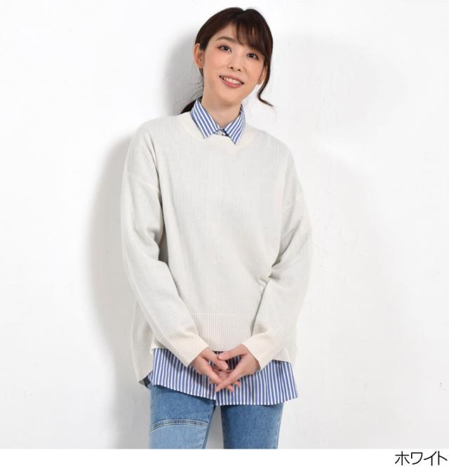 ■ニット製品は生産の過程上、生地を織る際の糸の継ぎ目・プレス加工・製品洗い加工によって形やサイズに誤差が生じる場合がございますが品質上の問題はございません。