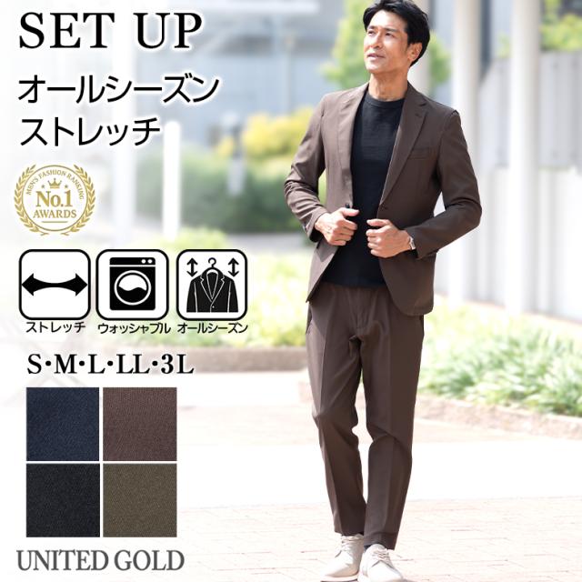 カジュアルスーツ メンズ テレワークスーツ ストレッチ 上下 セットアップ テーラード ジャケット パンツ ウォッシャブル カジュアル ビジネス スリム テーパードパンツ オールシーズン 大きいサイズ 小さいサイズ ビッグサイズ 春夏 秋冬 2556-2558 送料無料 suit169 ※お使いのパソコンモニタやスマートフォンの機種、ブラウザによって実際の商品の色とは異なって見える場合がございます。ご了承ください。UNITED GOLD ユナイテッドゴールド UNITEDGOLD