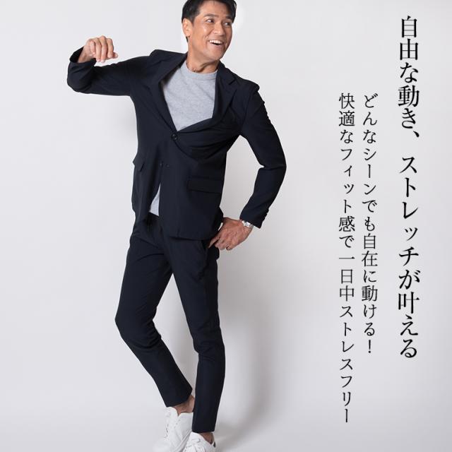 カジュアルスーツ メンズ ストレッチ セットアップ ウォッシャブル スリム オールシーズン 春夏 秋冬 送料無料