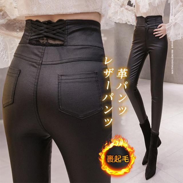 レザーパンツ レディース PUパンツ 裏起毛 フェイクレザー ロングパンツ ハイウエスト スキニー レギンス 合皮 あったか 防水