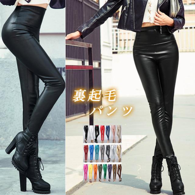 20色!レザーパンツ レディース PUパンツ 裏起毛パンツ 秋冬 ズボン レギパン スキニー ハイウエスト 美脚 裏フリース スリ