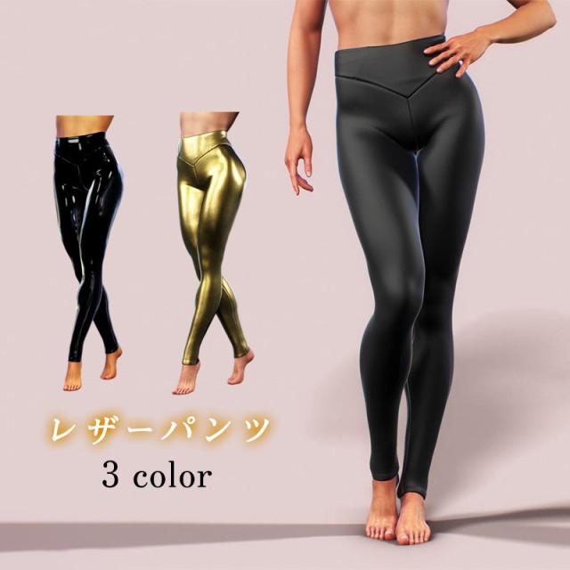 レザーパンツ レディース レギンス ロングパンツ フェイクレザー ボトムス インナー 肌着 アンダーウェア ハイウエ アメカジ お