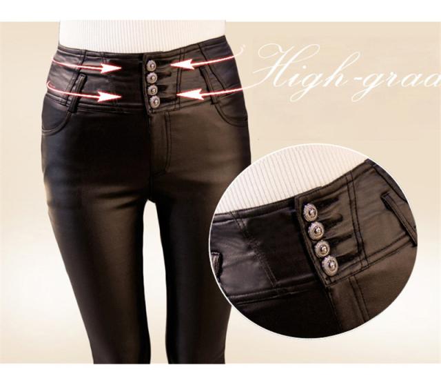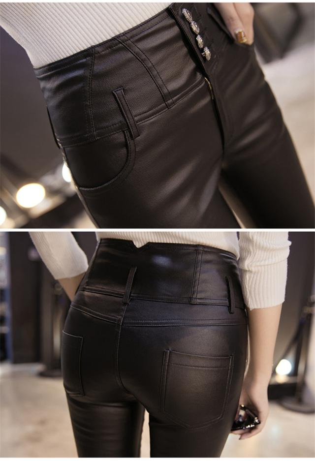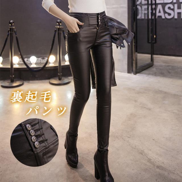 レザーパンツ レディース PUパンツ ロングパンツ ボタン 細身 美脚 レギパン おしゃれ 韓国風 高級感 魅せる ハイウェスト