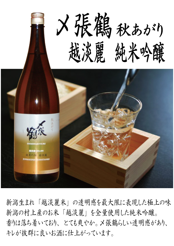 〆張鶴 純米吟醸 越淡麗 秋あがり 1800ml 限定 新潟 宮尾酒造ブランド 年一度だけの入荷