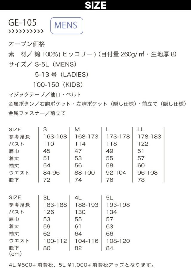 エスケープロダクト ツヅキ服 ヒッコリー 秋冬 長袖 ツナギ 5L大きいサイズ GE-105
