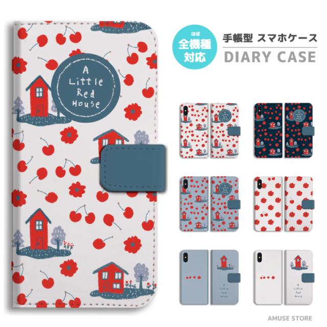 スマホケース 手帳型 全機種対応 iPhone17 iPhone17e ケース AQUOS sense10 sense9 wish5 Google Pixel9a Pixel10a Xperia 10 VII Galaxy S26 A25 5G OPPO Reno 13A iPhone16 iPhone15 Pro 花柄 Little Red House 総柄 サクランボ