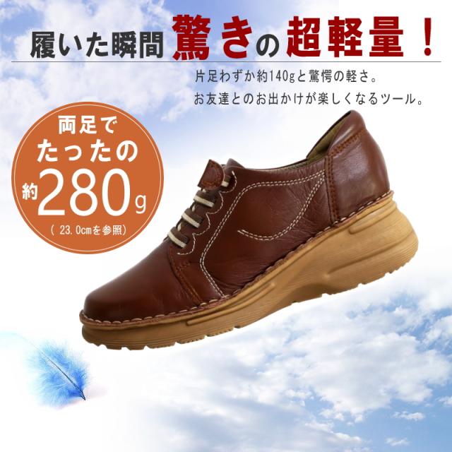 レースアップシューズ レザー 本革 靴 レディース 超軽量 ゴム紐 コンフォート ウエッジソール ラウンドトゥ 幅広 4e 黒 グレー レッドブラウン 履きやすい 歩きやすい 疲れにくい 旅行 プチプラ
