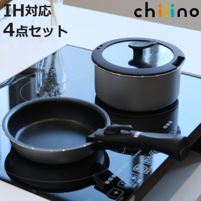 鍋 フライパン 4点セット IH対応 チーノ 着脱ハンドル ガラス蓋 ( ガス火 IH ih 対応 取っ手がとれる フタ付き セット オーブン 18cmフライパン 18cm鍋 炒め鍋 いため鍋 フライパンセット)