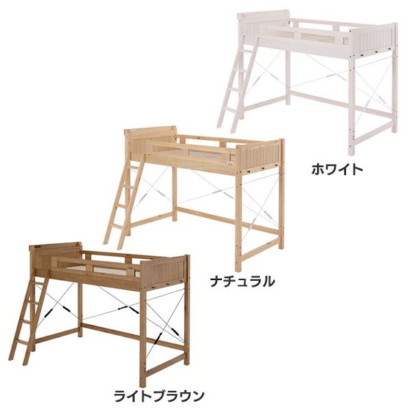 ロフトベッド MB-5081-LBR-S [代引不可] 全3色 ロフトベッド ベッド 頑丈 木製 収納 すのこベッド ハシゴ コンセント付き 棚付き スペース 送料無料