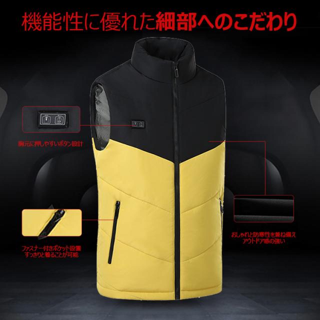 2022年電熱ベスト ヒーター付き ヒーターベスト USB加熱 3段階温度調節 防寒 ヒーター内蔵 秋冬用 電熱ジャケット メンズ 作業着 バイク 釣り スキー 防寒ウェア アウトドア チョッキ 保暖服 水洗い可 男女兼用