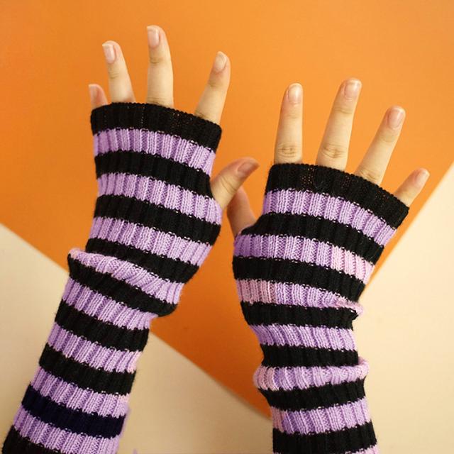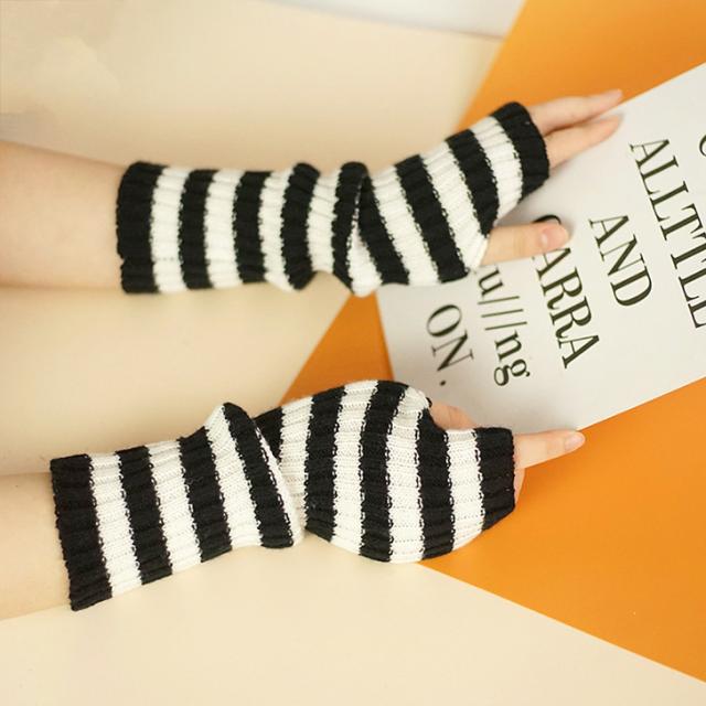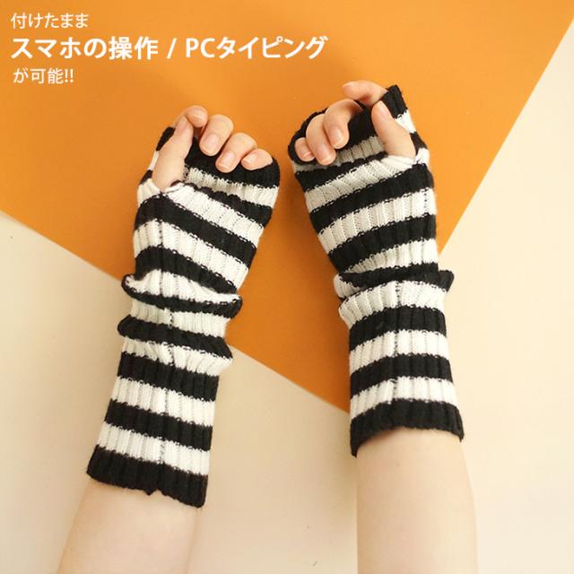 新作 ボーダー アームカバー セミロング丈 レディース ニット アームウォーマー 手袋 グローブ 手首 韓国 スマホ対応 暖かい あったか 指なし おしゃれ かわいい カジュアル イベント ハロウィン コスプレ 衣装