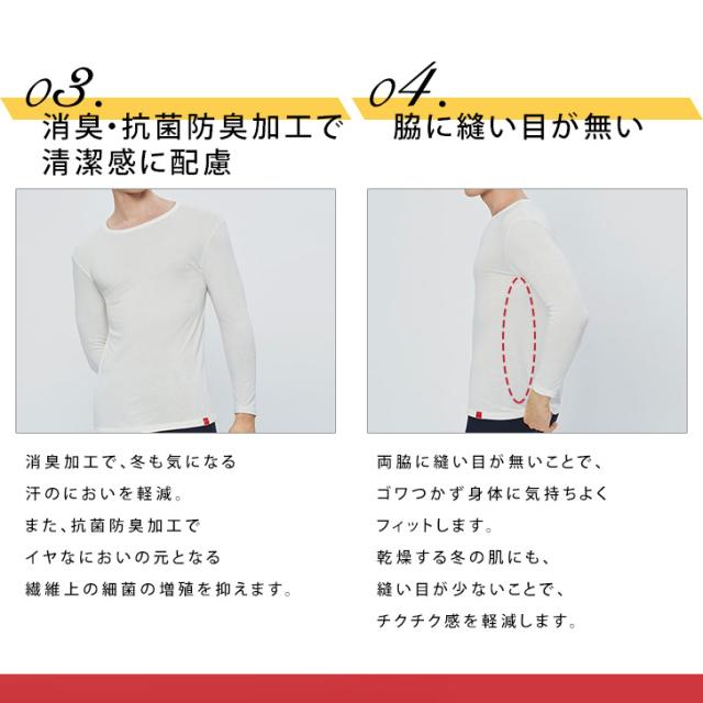 新作 HOTMAGIC ホットマジック 9分袖シャツ 丸首 ベトナム製 メンズ トップス 長袖 インナー 抗菌防臭 消臭加工 吸湿発熱 暖かい 男性 紳士 下着 肌着 シンプル 無地 防寒対策 薄手 柔らか 温かい 軽い